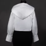 کلاهدار بودن: وجود کلاه در طراحی کت ساتن عروس کلاهدار، آن را از سایر مدلهای رایج متمایز میسازد. این ویژگی ضمن آنکه جنبه تزئینی دارد، برای عروسهایی که به استایل پوشیده و حجابی اهمیت میدهند، یک گزینه کارآمد به حساب میآید.