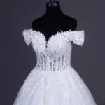 لباس عروس بارانک A.R با یک برش اروپایی کلاسیک، سیلوئتی لطیف و زنانه خلق میکند که از زمان و ترندهای زودگذر فراتر میرود. بخش بالاتنه لباس با مدل یقه دلبری طراحی شده است که با ظرافت خط سینه و گردن را به نمایش میگذارد و حالتی رمانتیک و جذاب به ظاهر عروس میبخشد. آستینهای آف شولدر، با طراحی خاص خود، به زیبایی شانهها را قاب میگیرند و یک عنصر کلاسیک را به لباس اضافه کردهاند که وقار و زیبایی را همزمان به ارمغان میآورد. این ترکیب، به عروس یک ظاهر شاهزادهگونه و باوقار میبخشد که برای هر مراسمی مناسب است.