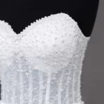 گرچه طراحی اصلی لباس عروس کلارا بر پایه‌ی سادگی و ظرافت است، اما این سادگی با جزئیات دقیق و هنرمندانه تکمیل شده است. تزئینات ظریف و دست‌دوز، همچون دانتل‌های ظریف فرانسوی، مرواریدهای کوچک و کریستال‌های درخشان، به صورت هوشمندانه بر روی بخش‌هایی از لباس کار شده‌اند تا درخشش و جلوه‌ای بی‌نظیر به آن ببخشند. این جزئیات، در زیر نور سالن، بازی نور و سایه زیبایی ایجاد کرده و هر نگاهی را به خود خیره می‌کنند. با انتخاب این لباس، شما نه تنها یک لباس، بلکه یک اثر هنری پوشیدنی را انتخاب کرده‌اید که داستانی از ظرافت، مدرنیته و اصالت را روایت می‌کند.