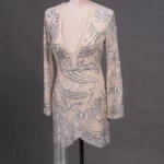 در این طراحی، تمرکز اصلی روی ظرافت و تلالو سنگکاریهای حرفهای است که با دقت بالا روی قسمتهایی از لباس کار شدهاند. این تزئینات در نور شب، درخششی خاص دارند که بدون نیاز به زیورآلات پرزرقوبرق، استایل شما را کامل میکند. این پیراهن کوتاه، برای زنانی طراحی شده که همیشه یک قدم جلوتر از مد حرکت میکنند.